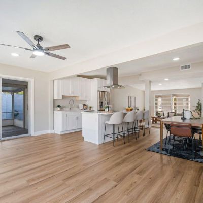 Ceiling Fan(s), Eating Space In Kitchen, Open Floorplan, Stone Counters, Thermostat