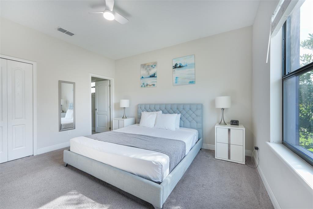 Ceiling Fan(s), High Ceilings, Open Floorplan, Stone Counters, Thermostat, Walk-In Closet(s), Window Treatments