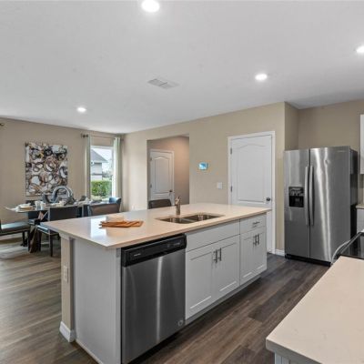 Eating Space In Kitchen, Kitchen/Family Room Combo, Living Room/Dining Room Combo, Open Floorplan, PrimaryBedroom Upstairs, Solid Surface Counters, Stone Counters, Thermostat, Walk-In Closet(s)