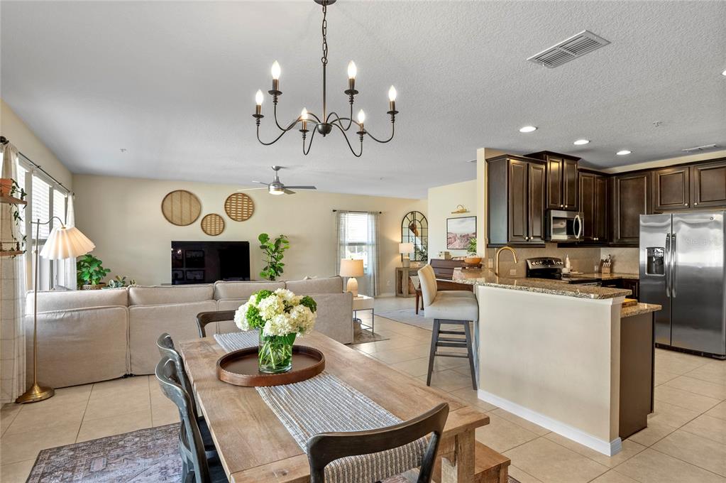 Ceiling Fan(s), Eating Space In Kitchen, High Ceilings, Kitchen/Family Room Combo, Living Room/Dining Room Combo, Stone Counters, Thermostat, Walk-In Closet(s), Window Treatments