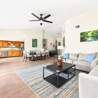 Ceiling Fan(s), Eating Space In Kitchen, High Ceilings, Living Room/Dining Room Combo, Open Floorplan, Primary Bedroom Main Floor, Solid Wood Cabinets, Thermostat, Vaulted Ceiling(s), Window Treatments