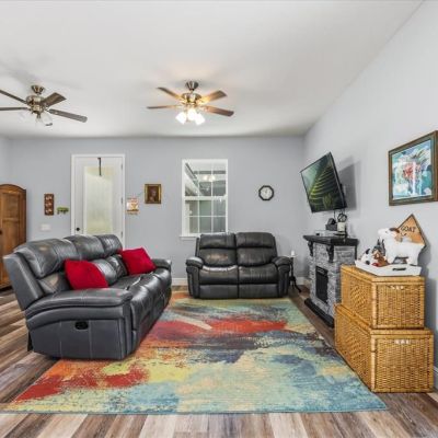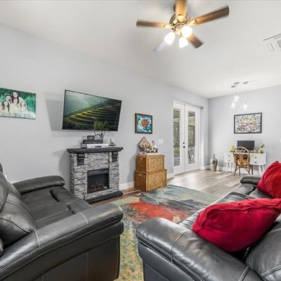 Ceiling Fan(s), Kitchen/Family Room Combo, Open Floorplan, Primary Bedroom Main Floor, Solid Wood Cabinets, Split Bedroom, Stone Counters, Thermostat, Thermostat Attic Fan, Tray Ceiling(s), Walk-In Closet(s)