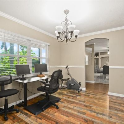 Ceiling Fan(s), Crown Molding, Eating Space In Kitchen, Open Floorplan, Stone Counters, Walk-In Closet(s), Window Treatments