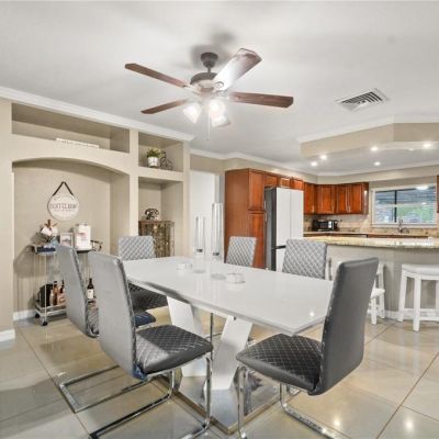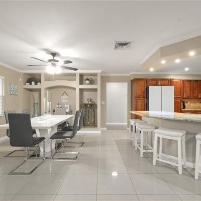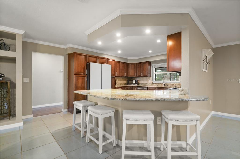 Ceiling Fan(s), Crown Molding, Eating Space In Kitchen, Open Floorplan, Stone Counters, Walk-In Closet(s), Window Treatments