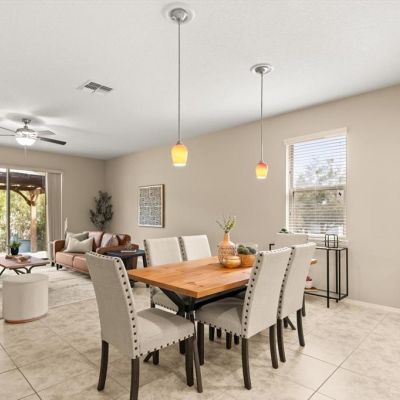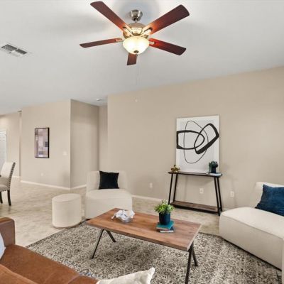 Ceiling Fan(s), Eating Space In Kitchen, High Ceilings, Kitchen/Family Room Combo, Living Room/Dining Room Combo, Open Floorplan, Primary Bedroom Main Floor, Split Bedroom, Stone Counters, Walk-In Closet(s)