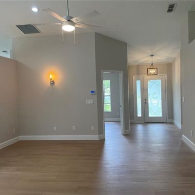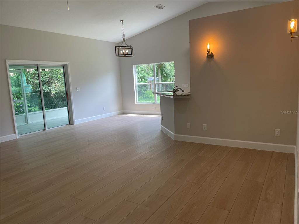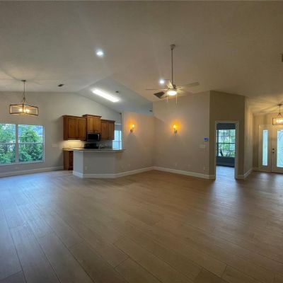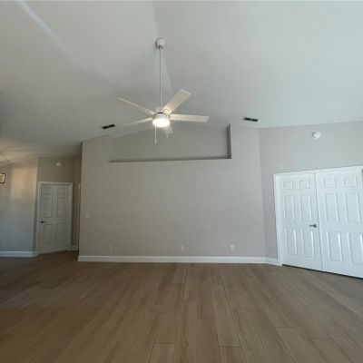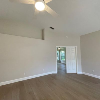 Cathedral Ceiling(s), Ceiling Fan(s), Eating Space In Kitchen, High Ceilings, Living Room/Dining Room Combo, Open Floorplan, Primary Bedroom Main Floor, Solid Surface Counters, Solid Wood Cabinets, Stone Counters, Thermostat, Vaulted Ceiling(s), Walk-In Closet(s)