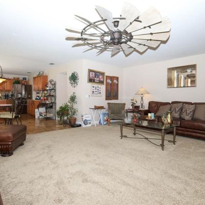 Ceiling Fan(s), Eating Space In Kitchen, Kitchen/Family Room Combo, Living Room/Dining Room Combo, PrimaryBedroom Upstairs, Solid Surface Counters, Solid Wood Cabinets, Stone Counters, Thermostat