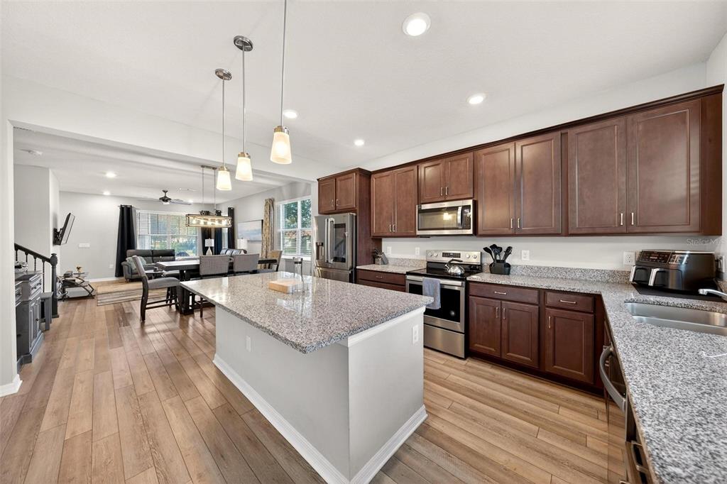 Built-in Features, Ceiling Fan(s), Eating Space In Kitchen, In Wall Pest System, Kitchen/Family Room Combo, Open Floorplan, Pest Guard System, PrimaryBedroom Upstairs, Split Bedroom, Stone Counters, Thermostat, Walk-In Closet(s)