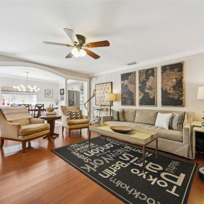 Ceiling Fan(s), Crown Molding, Eating Space In Kitchen, Living Room/Dining Room Combo, Primary Bedroom Main Floor, Stone Counters, Thermostat, Walk-In Closet(s), Window Treatments