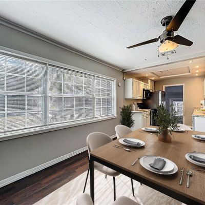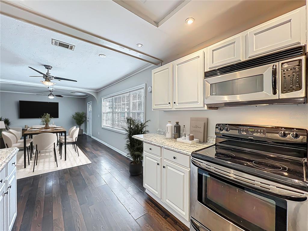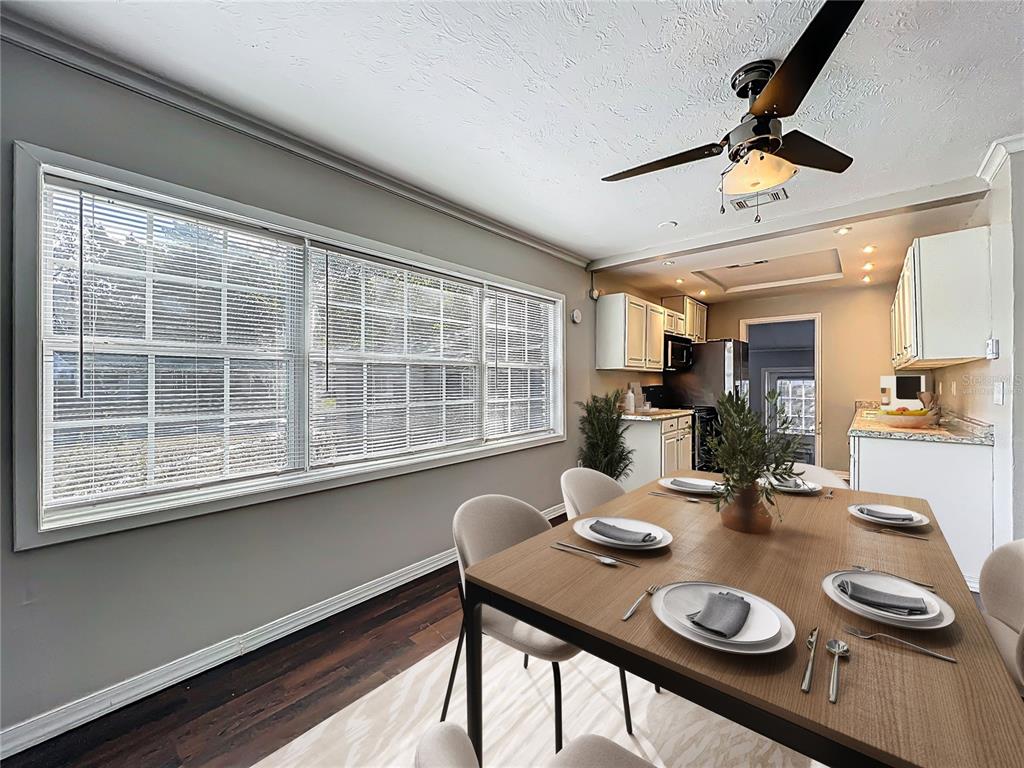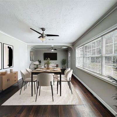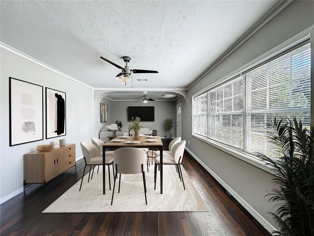 Ceiling Fan(s), Kitchen/Family Room Combo, Living Room/Dining Room Combo, Open Floorplan, Window Treatments
