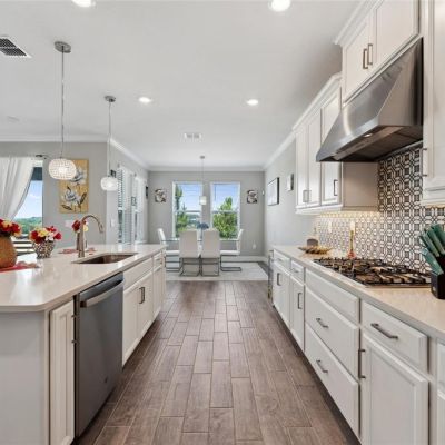 Crown Molding, High Ceilings, Kitchen/Family Room Combo, Open Floorplan, Primary Bedroom Main Floor, Smart Home, Solid Surface Counters, Solid Wood Cabinets, Stone Counters, Thermostat, Walk-In Closet(s), Window Treatments