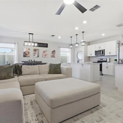 Ceiling Fan(s), Kitchen/Family Room Combo, Open Floorplan, Solid Surface Counters