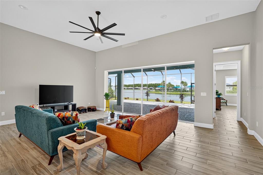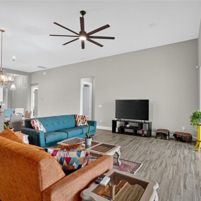 Ceiling Fan(s), High Ceilings, Living Room/Dining Room Combo, Open Floorplan, Primary Bedroom Main Floor, Split Bedroom, Stone Counters, Window Treatments