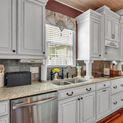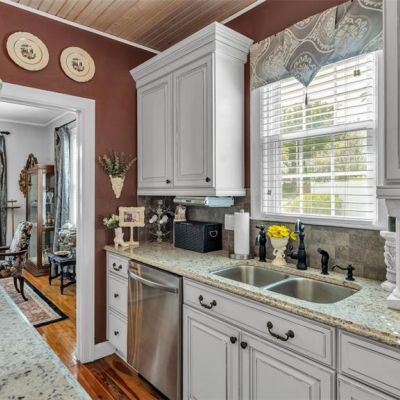 Ceiling Fan(s), Eating Space In Kitchen, High Ceilings, Stone Counters, Thermostat