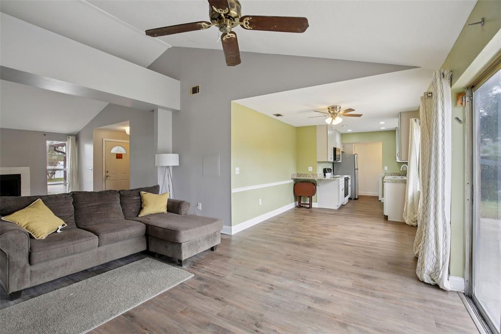 Ceiling Fan(s), Eating Space In Kitchen, High Ceilings, Kitchen/Family Room Combo, Open Floorplan, Primary Bedroom Main Floor, Solid Surface Counters, Stone Counters, Thermostat