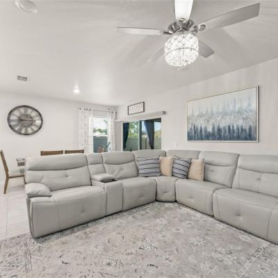 Ceiling Fan(s), Eating Space In Kitchen, High Ceilings, Kitchen/Family Room Combo, Living Room/Dining Room Combo, Open Floorplan, Window Treatments