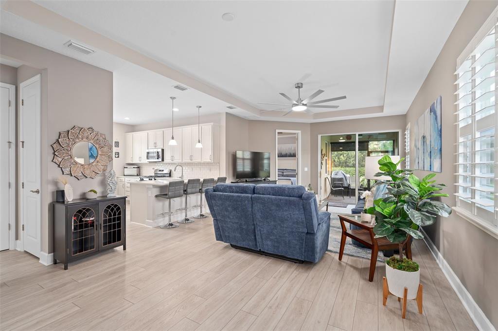 Accessibility Features, Built-in Features, Ceiling Fan(s), Eating Space In Kitchen, High Ceilings, Living Room/Dining Room Combo, Open Floorplan, Primary Bedroom Main Floor, Solid Wood Cabinets, Stone Counters, Thermostat, Tray Ceiling(s), Walk-In Closet(s), Window Treatments