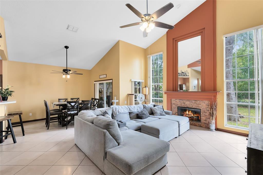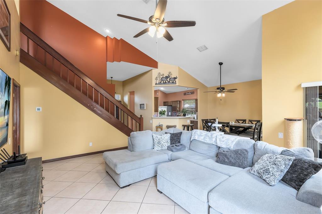 Ceiling Fan(s), Eating Space In Kitchen, Living Room/Dining Room Combo, Primary Bedroom Main Floor, Solid Surface Counters, Solid Wood Cabinets, Thermostat, Vaulted Ceiling(s), Walk-In Closet(s), Window Treatments