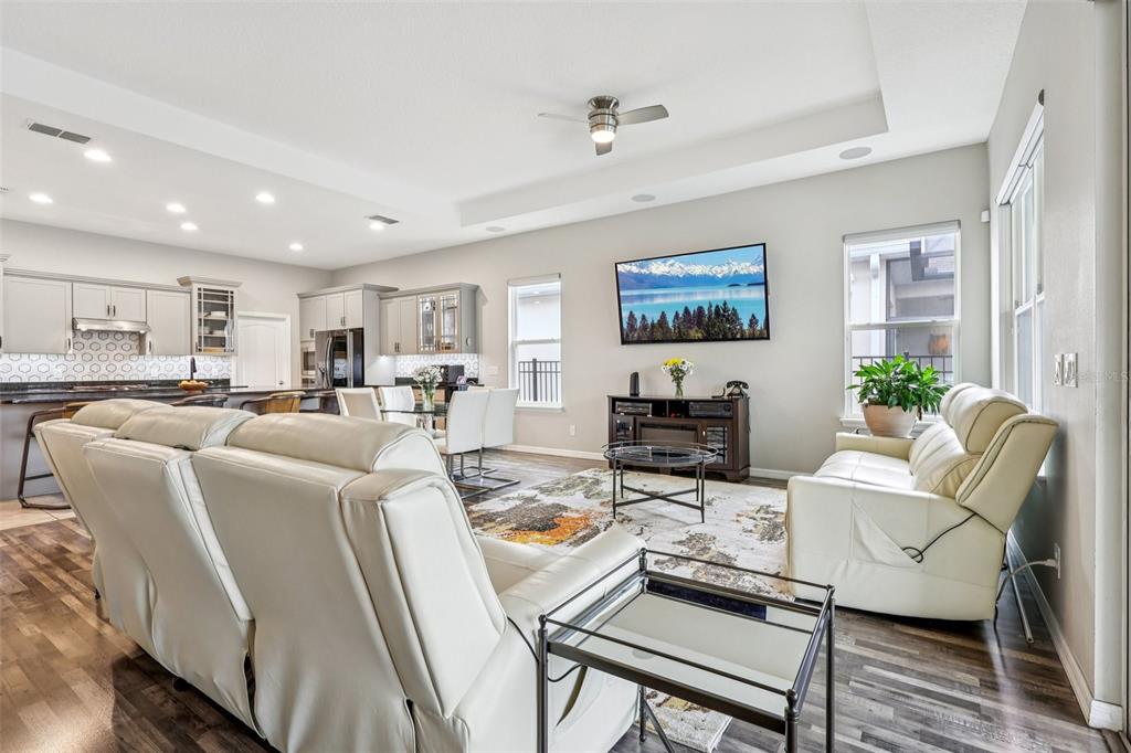 Ceiling Fan(s), Central Vacuum, Coffered Ceiling(s), Eating Space In Kitchen, High Ceilings, Kitchen/Family Room Combo, Living Room/Dining Room Combo, Open Floorplan, Primary Bedroom Main Floor, Solid Surface Counters, Solid Wood Cabinets, Stone Counters, Thermostat, Tray Ceiling(s), Walk-In Closet(s), Window Treatments