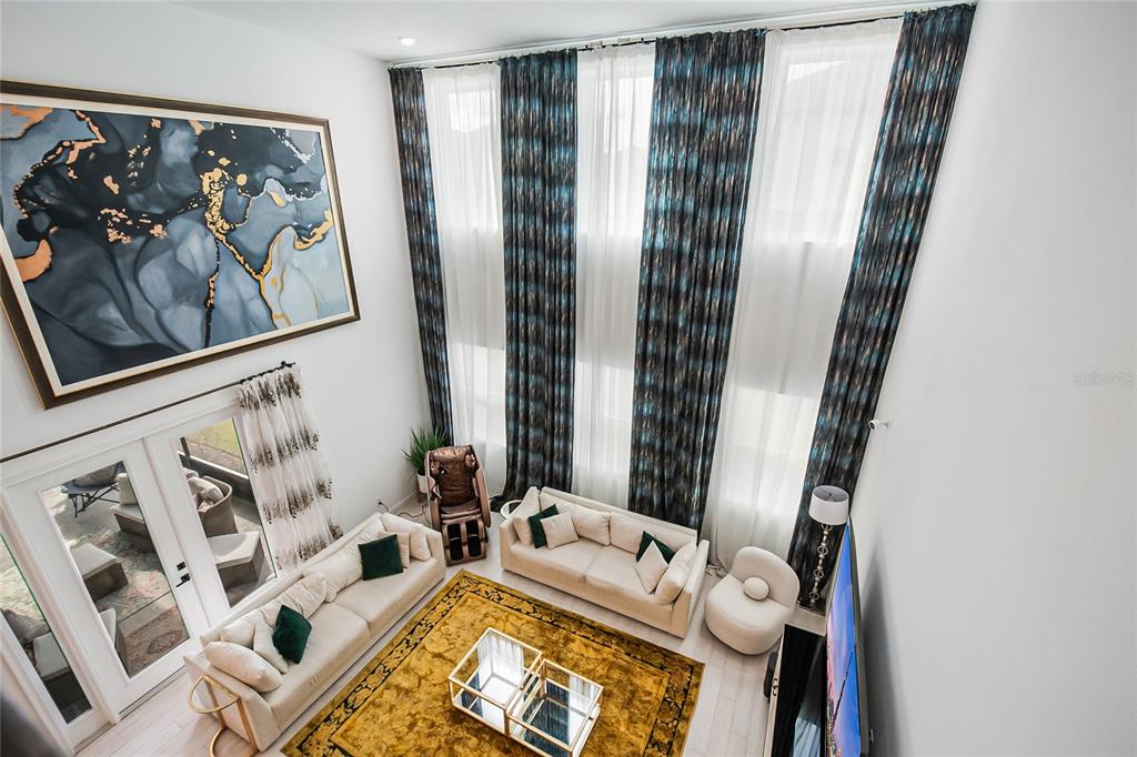 Built-in Features, Ceiling Fan(s), Eating Space In Kitchen, High Ceilings, Kitchen/Family Room Combo, L Dining, Open Floorplan, PrimaryBedroom Upstairs, Smart Home, Split Bedroom, Thermostat, Walk-In Closet(s), Window Treatments