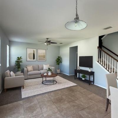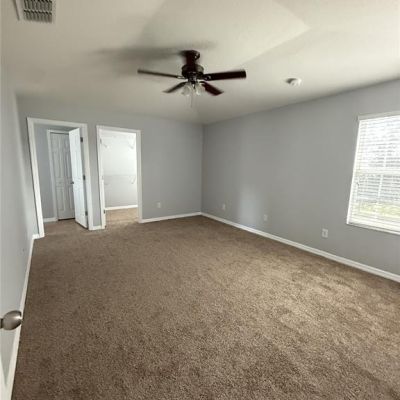 Ceiling Fan(s), High Ceilings, Open Floorplan, PrimaryBedroom Upstairs, Solid Surface Counters, Solid Wood Cabinets, Thermostat, Walk-In Closet(s)