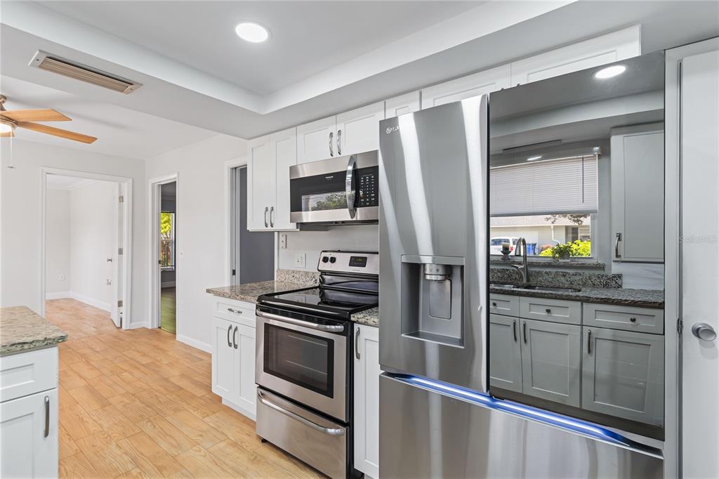 Ceiling Fan(s), Crown Molding, Eating Space In Kitchen, Stone Counters, Walk-In Closet(s)