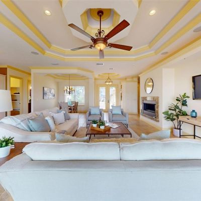 Ceiling Fan(s), Coffered Ceiling(s), Eating Space In Kitchen, High Ceilings, Kitchen/Family Room Combo, Open Floorplan, Solid Surface Counters, Solid Wood Cabinets, Thermostat, Walk-In Closet(s), Window Treatments