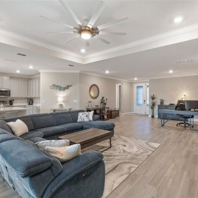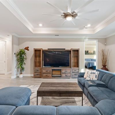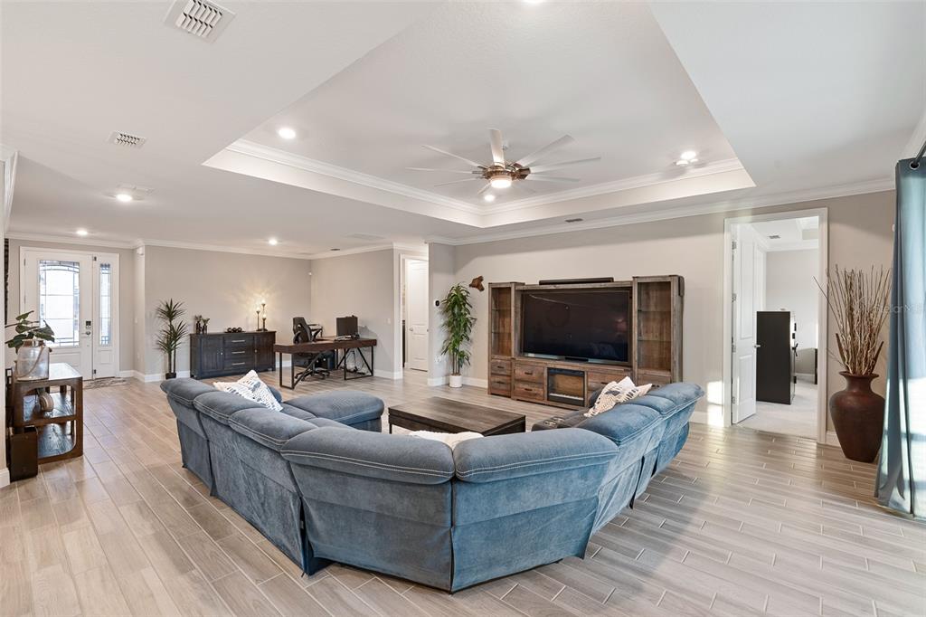 Crown Molding, High Ceilings, Kitchen/Family Room Combo, Open Floorplan, Primary Bedroom Main Floor, Solid Surface Counters, Thermostat, Tray Ceiling(s), Walk-In Closet(s), Window Treatments
