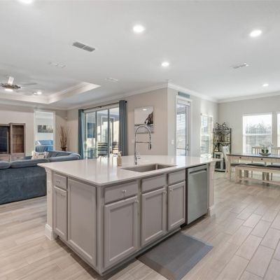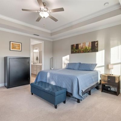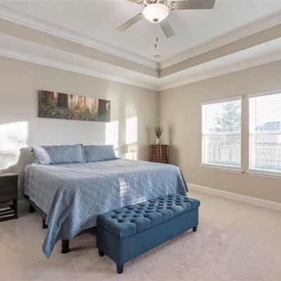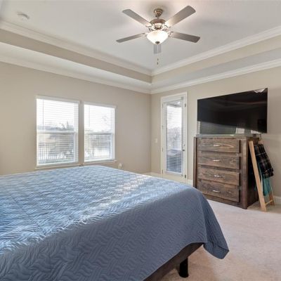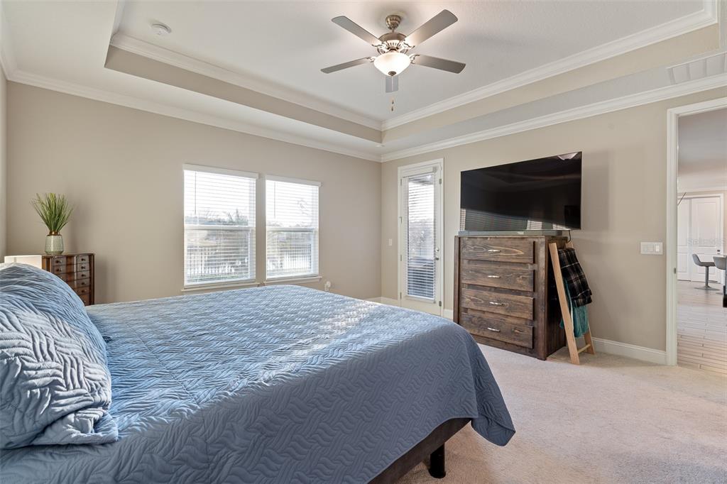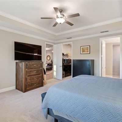 Crown Molding, High Ceilings, Kitchen/Family Room Combo, Open Floorplan, Primary Bedroom Main Floor, Solid Surface Counters, Thermostat, Tray Ceiling(s), Walk-In Closet(s), Window Treatments