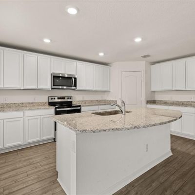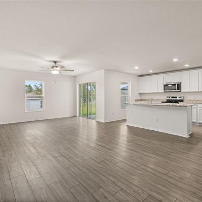 Ceiling Fan(s), Eating Space In Kitchen, Kitchen/Family Room Combo, Open Floorplan, Primary Bedroom Main Floor, Solid Wood Cabinets, Split Bedroom, Stone Counters, Thermostat, Walk-In Closet(s)