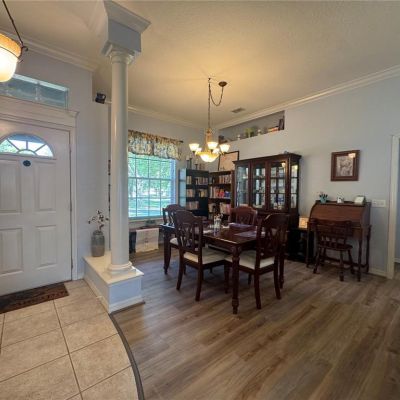Ceiling Fan(s), Crown Molding, Eating Space In Kitchen, High Ceilings, Living Room/Dining Room Combo, Open Floorplan, Primary Bedroom Main Floor, Solid Surface Counters, Split Bedroom, Stone Counters, Thermostat, Walk-In Closet(s)