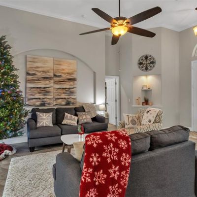 Ceiling Fan(s), High Ceilings, Open Floorplan, Primary Bedroom Main Floor, Solid Wood Cabinets, Stone Counters, Thermostat, Walk-In Closet(s)