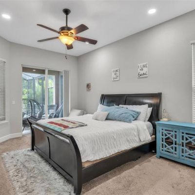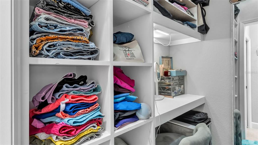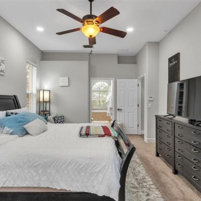 Ceiling Fan(s), High Ceilings, Open Floorplan, Primary Bedroom Main Floor, Solid Wood Cabinets, Stone Counters, Thermostat, Walk-In Closet(s)