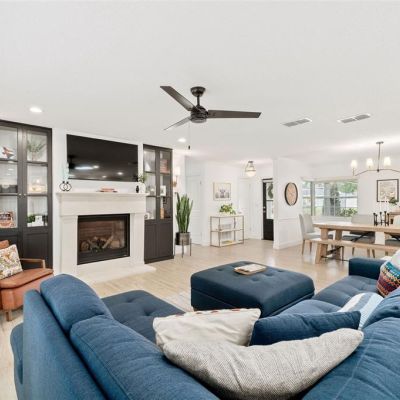 Built-in Features, Ceiling Fan(s), Crown Molding, Eating Space In Kitchen, Kitchen/Family Room Combo, Living Room/Dining Room Combo, Open Floorplan, Primary Bedroom Main Floor, Skylight(s), Solid Wood Cabinets, Stone Counters, Thermostat