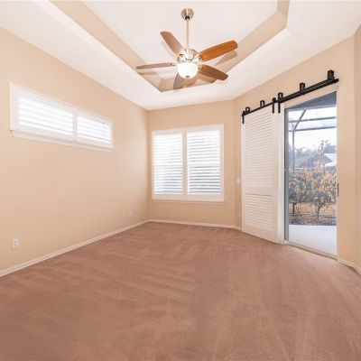 Ceiling Fan(s), Coffered Ceiling(s), Crown Molding, Eating Space In Kitchen, Kitchen/Family Room Combo, Primary Bedroom Main Floor, Solid Wood Cabinets, Split Bedroom, Thermostat, Vaulted Ceiling(s), Walk-In Closet(s), Window Treatments