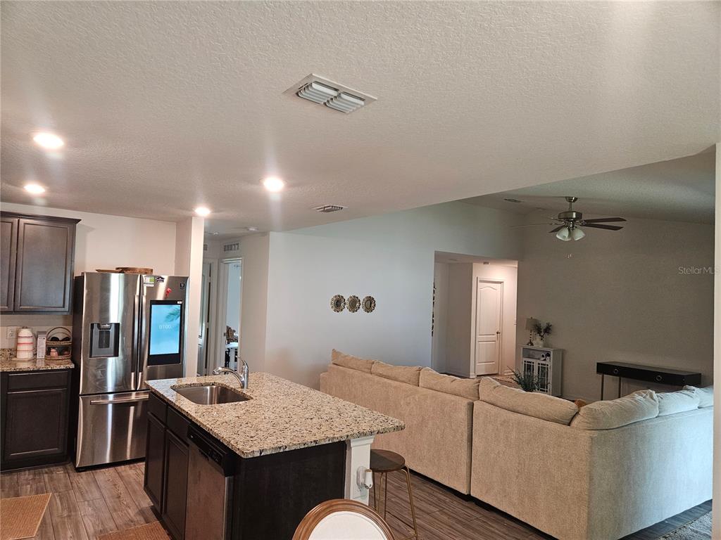 Ceiling Fan(s), Eating Space In Kitchen, High Ceilings, Living Room/Dining Room Combo, Open Floorplan, Solid Surface Counters, Split Bedroom, Thermostat, Walk-In Closet(s)