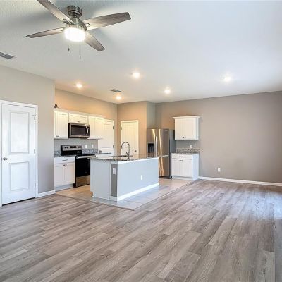 Ceiling Fan(s), Coffered Ceiling(s), Eating Space In Kitchen, High Ceilings, Kitchen/Family Room Combo, Open Floorplan, PrimaryBedroom Upstairs, Solid Surface Counters, Solid Wood Cabinets, Stone Counters, Thermostat, Walk-In Closet(s)