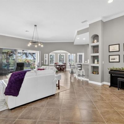 Built-in Features, Ceiling Fan(s), Crown Molding, High Ceilings, Kitchen/Family Room Combo, Open Floorplan, Primary Bedroom Main Floor, Solid Surface Counters, Solid Wood Cabinets, Split Bedroom, Stone Counters, Window Treatments