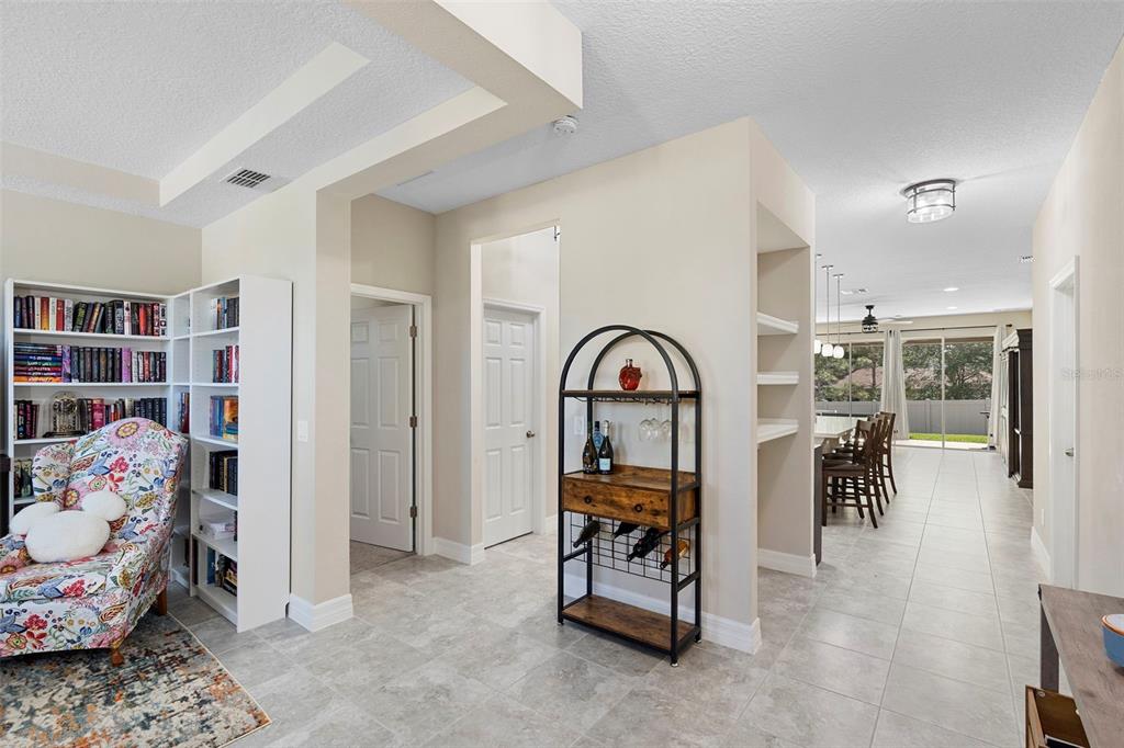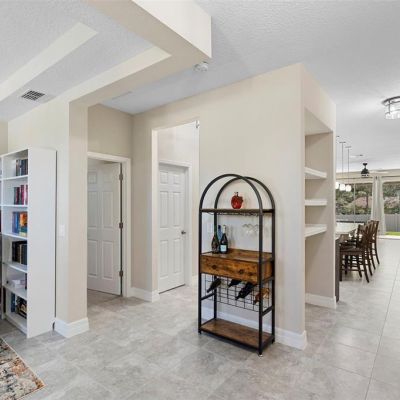Built-in Features, Ceiling Fan(s), Dry Bar, High Ceilings, Kitchen/Family Room Combo, Open Floorplan, Primary Bedroom Main Floor, Solid Surface Counters, Split Bedroom, Thermostat, Tray Ceiling(s), Walk-In Closet(s)