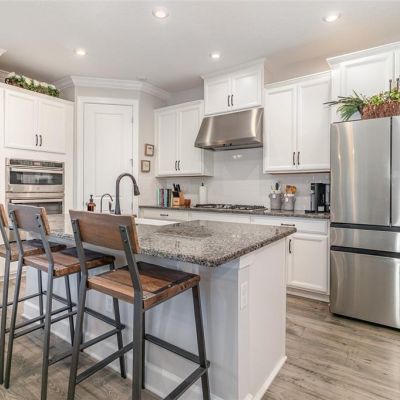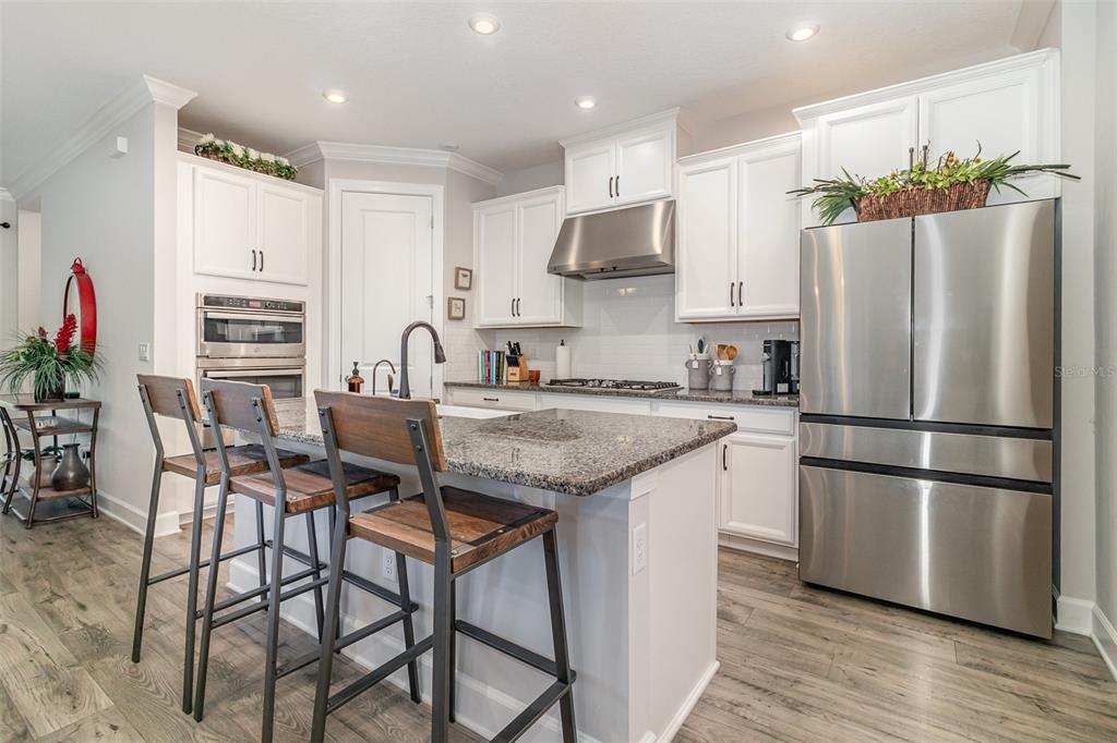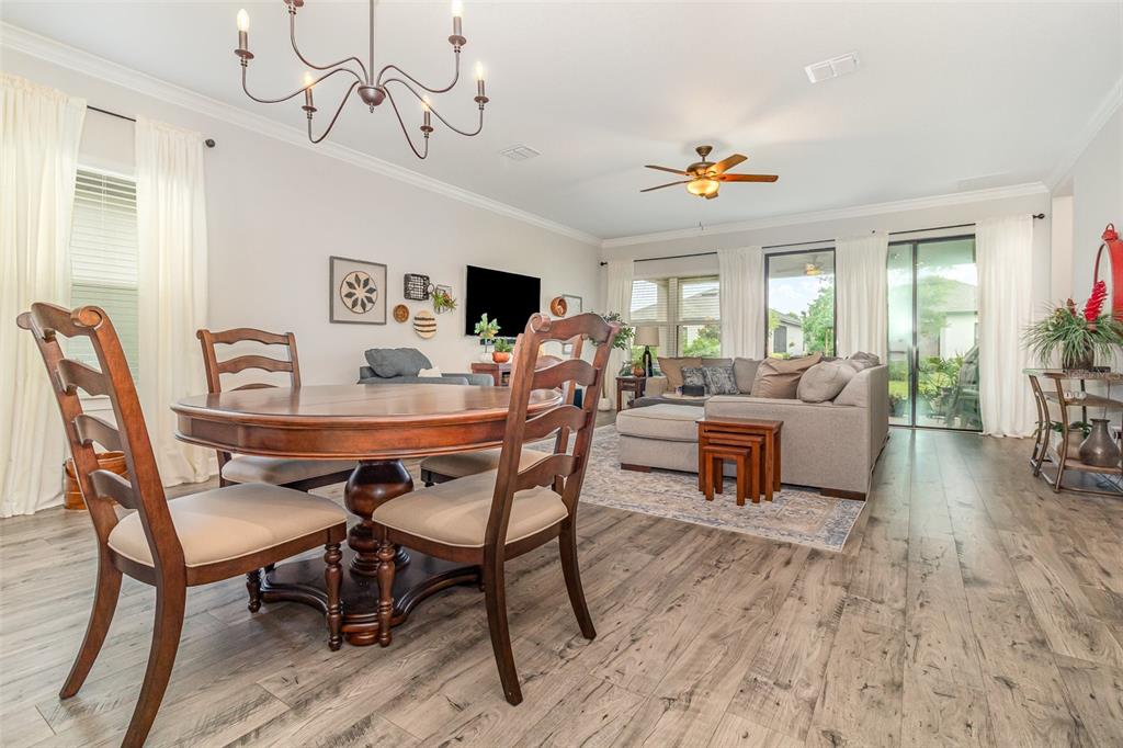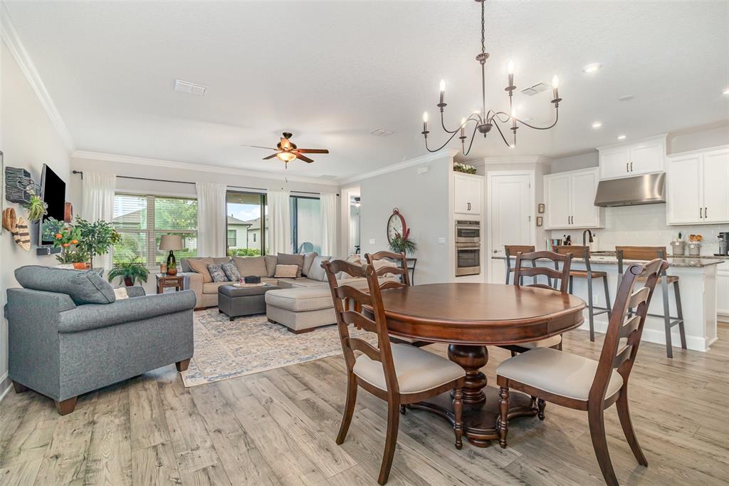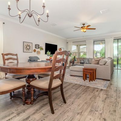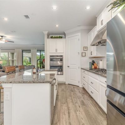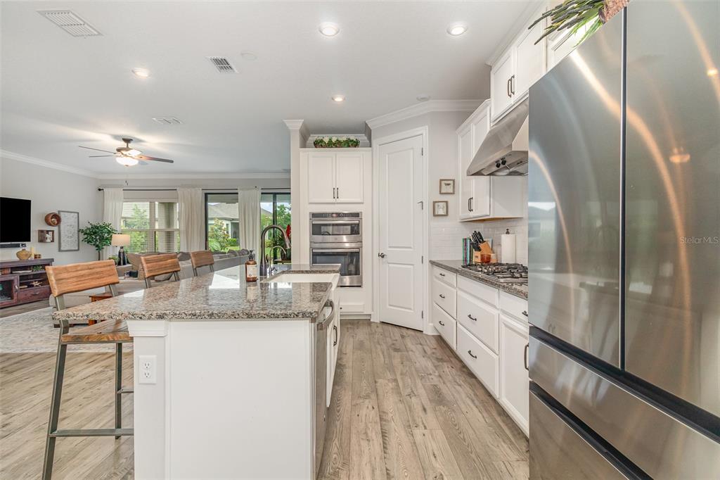 Built-in Features, Ceiling Fan(s), Crown Molding, Kitchen/Family Room Combo, Open Floorplan, Split Bedroom, Stone Counters, Walk-In Closet(s)