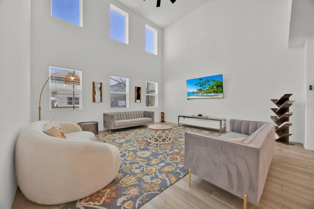 Ceiling Fan(s), Eating Space In Kitchen, High Ceilings, Kitchen/Family Room Combo, L Dining, Living Room/Dining Room Combo, Open Floorplan