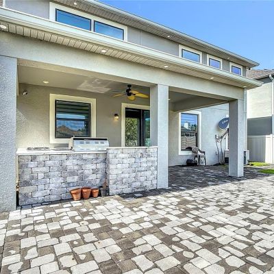 Balcony, Outdoor Grill, Outdoor Kitchen, Rain Gutters, Sidewalk, Sliding Doors, Sprinkler Metered
