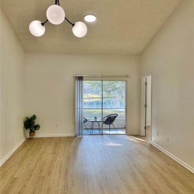 Cathedral Ceiling(s), Living Room/Dining Room Combo, Vaulted Ceiling(s), Window Treatments