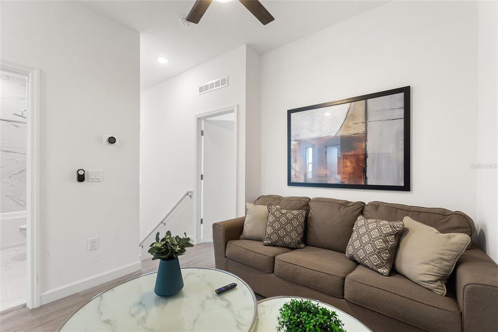 High Ceilings, Kitchen/Family Room Combo, PrimaryBedroom Upstairs, Solid Surface Counters, Thermostat, Window Treatments