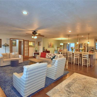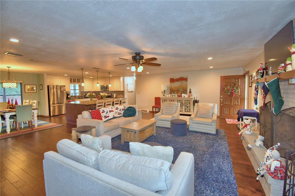 Ceiling Fan(s), Eating Space In Kitchen, Kitchen/Family Room Combo, Living Room/Dining Room Combo, Open Floorplan, Primary Bedroom Main Floor, Solid Surface Counters, Solid Wood Cabinets, Split Bedroom