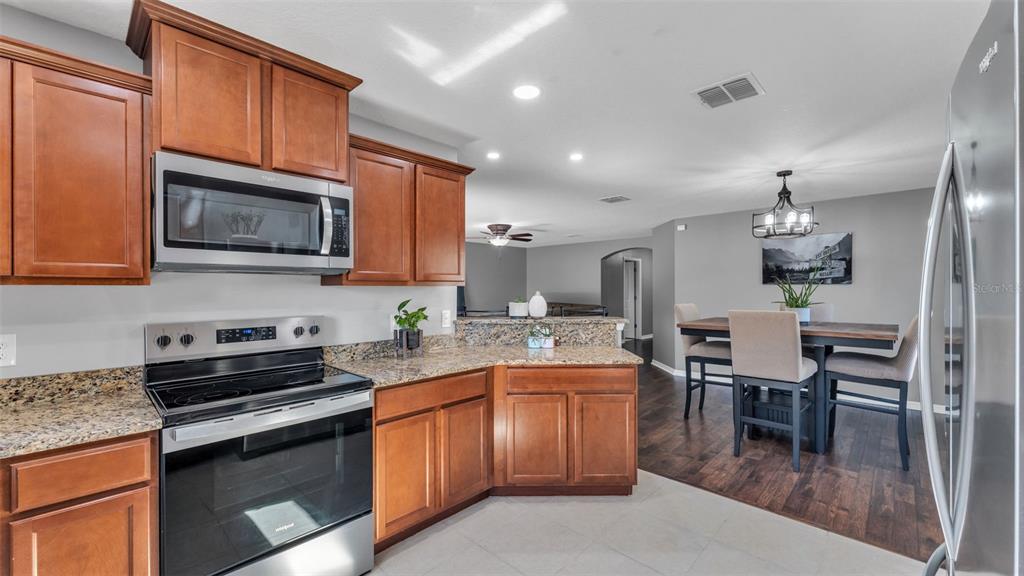 Ceiling Fan(s), Kitchen/Family Room Combo, Living Room/Dining Room Combo, Open Floorplan, Stone Counters, Walk-In Closet(s), Window Treatments