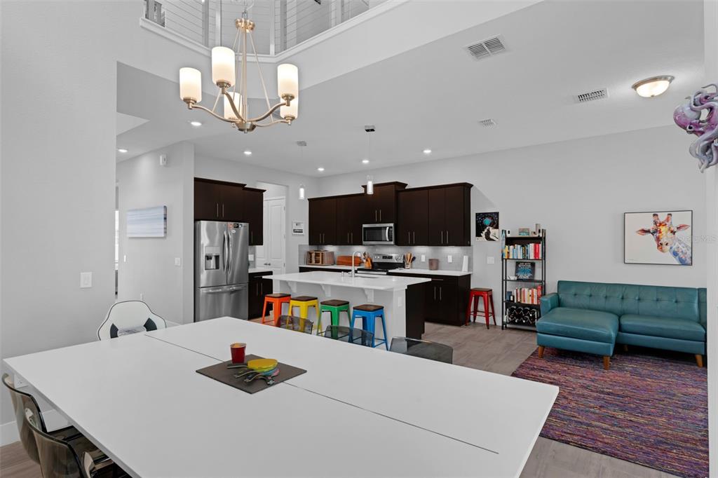 Cathedral Ceiling(s), Ceiling Fan(s), Eating Space In Kitchen, High Ceilings, In Wall Pest System, Kitchen/Family Room Combo, Living Room/Dining Room Combo, Open Floorplan, PrimaryBedroom Upstairs, Smart Home, Stone Counters, Thermostat, Tray Ceiling(s), Walk-In Closet(s), Window Treatments