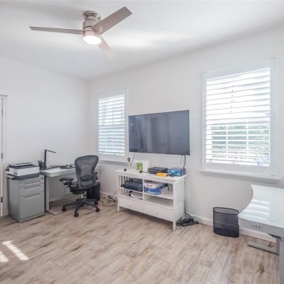 Ceiling Fan(s), High Ceilings, Kitchen/Family Room Combo, Open Floorplan, Primary Bedroom Main Floor, Solid Surface Counters, Solid Wood Cabinets, Split Bedroom, Walk-In Closet(s), Window Treatments
