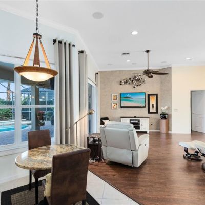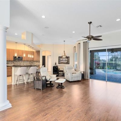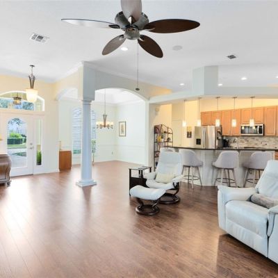 Ceiling Fan(s), Eating Space In Kitchen, High Ceilings, Kitchen/Family Room Combo, Open Floorplan, Pest Guard System, Primary Bedroom Main Floor, Solid Surface Counters, Solid Wood Cabinets, Split Bedroom, Window Treatments
