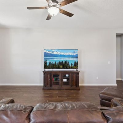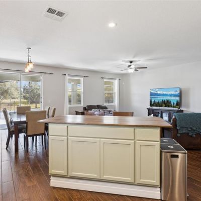 Ceiling Fan(s), Eating Space In Kitchen, High Ceilings, Kitchen/Family Room Combo, Open Floorplan, Primary Bedroom Main Floor, Solid Surface Counters, Solid Wood Cabinets, Split Bedroom, Thermostat, Walk-In Closet(s), Window Treatments
